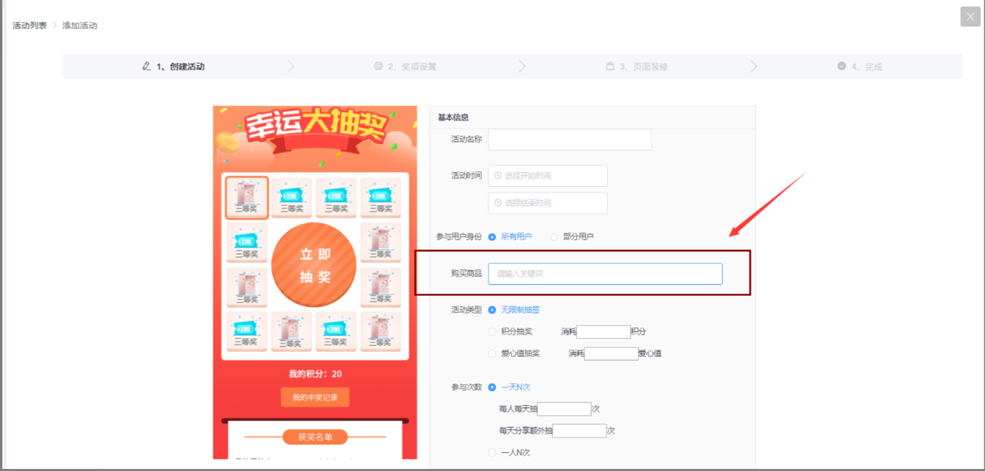 注意:如果多个活动设置同一个商品,只要在其中一个活动中购买过该商品,都可以参与其他活动的抽奖,不需要再次购买